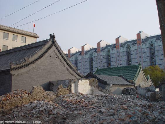 Renovated Temple Halls and Courtyard with one of the few remaining older structures standing between ChongwenMen Dongdajie and XiHuaShi Dajie'.